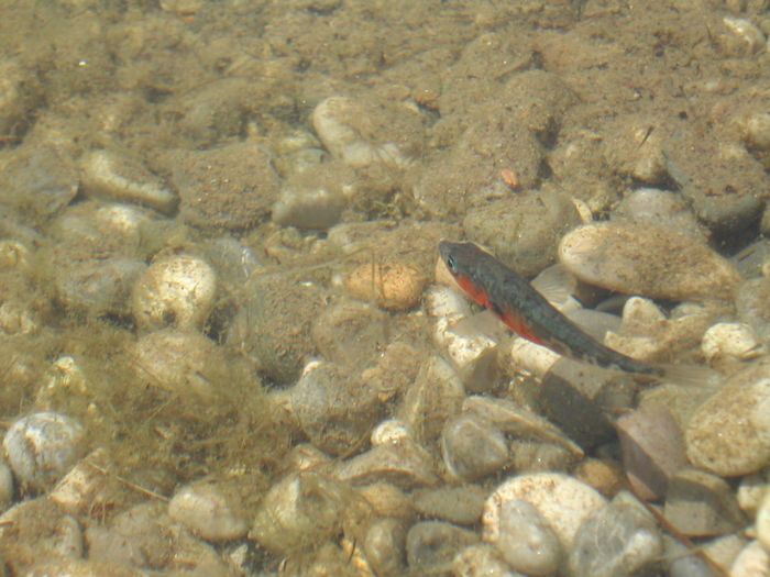 Und das ist der nestlose Vater von den Lütten. Hier kann man schön die rote Bauchseite erkennen, die Stichlingsmännchen nur während der Paarungs- und Brutzeit haben.