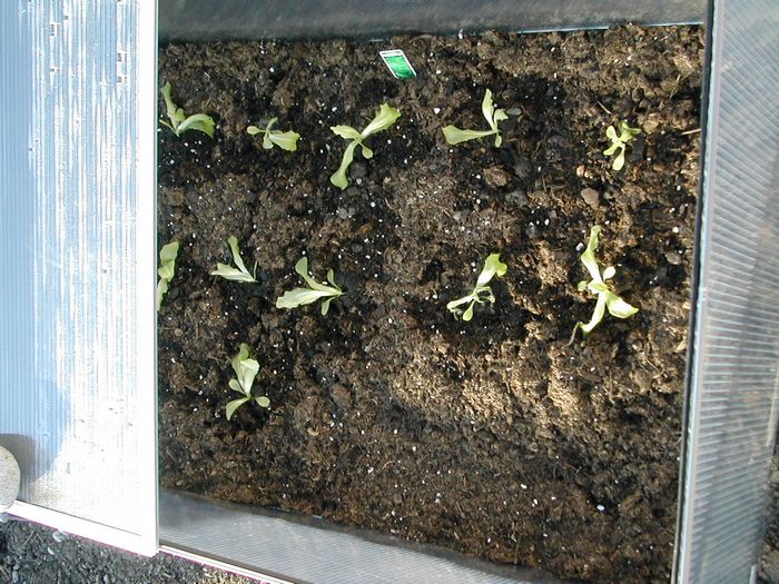 Mal sehen, was wird. Bei so jungen Salatpflanzen hat man ja schon Angst, zu gießen (habe extra meine kleine Gießkanne, die ich für die Zimmerblumen habe, aus dem Haus geholt, um zu wässern). Ein Vorteil hat das Frühbeet allemal: es können keine Schnecken ran.