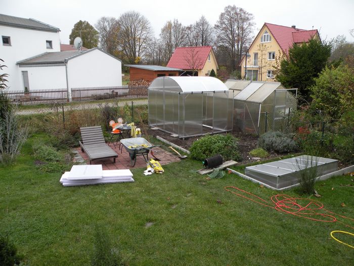 Die Punktfundamente sind gesetzt, jetzt muß ich noch 24 Stunden warten, bis ich die Stützsteine wegnehmen kann. (07.11.08)