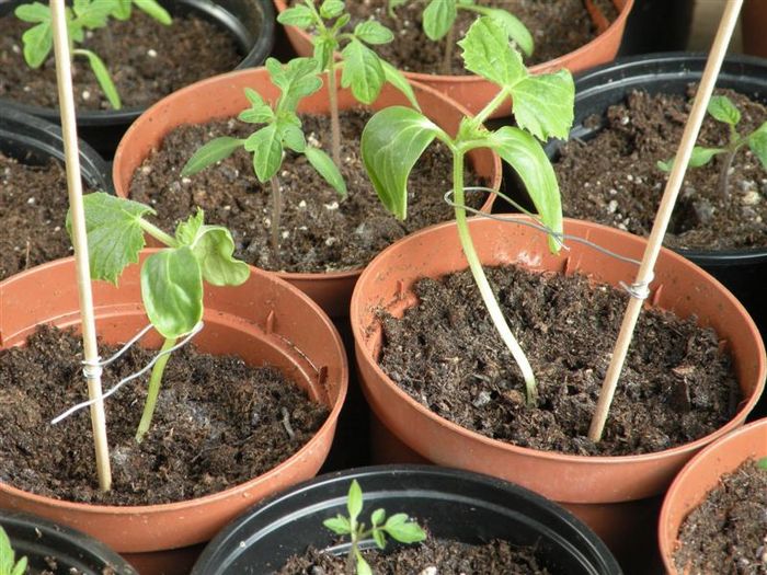 Wer so schnell wächst, möchte gestützt werden. Schaschlikspieße und ein bißchen Draht helfen dabei. (21.03.2009)
