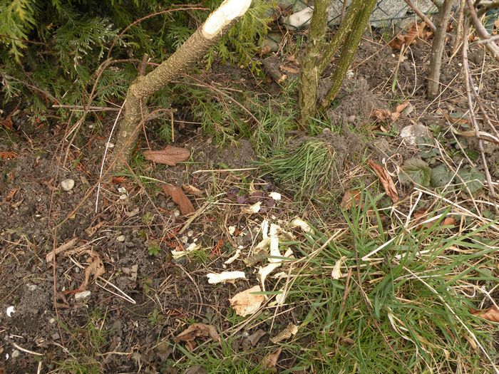 Nachdem mir heute meine Nachbarin einen Baum zeigte, an dem ich zwei Äste absägen soll, entdeckten wir ein anderes Gehölz, welches bereits "abgesägt" war. (22.03.2009)