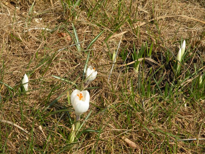 Nun ist sie doch (beinahe) aufgegangen. Nachdem seit drei Tagen die Krokusse mit geschlossenen Blüten rumstehen, hat sich eine heute bequemt, doch mal ein bißchen ihren Kelch zu öffnen. Da sie wohl den Wetterbericht für die nächsten Tage gelesen hat, ist sie dann auch wieder prompt zugegangen (wer hält schon den Kelch auf, wenn von oben Schnee kommen soll).