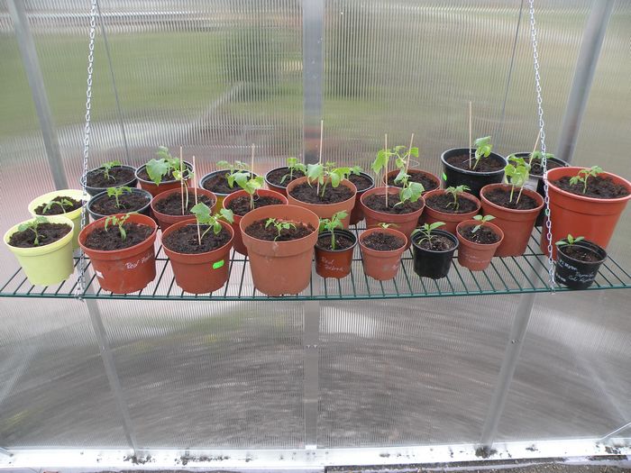 Nachdem die Tomaten heute (teilweise) in einen eigenen Topf umgezogen sind, müssen Sie nun auch raus aus der Wohnung. Neuer Standort: Tomatenhaus. Es ist ein kleines Vabanque-Spiel, aber der Wetterbericht sagt nichts mehr von Nachtfrösten. Die Tomate in dem rechten, großen Topf sieht nach drei Wochen...