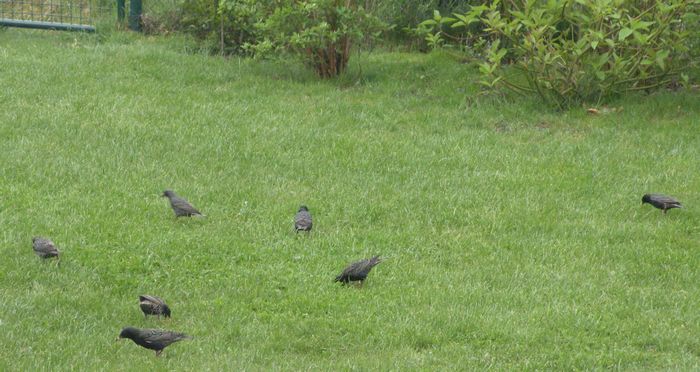 Nachdem seit zig Tagen Amseln mit 1-4 Würmern im Schnabel durch den Garten marschiert sind (offensichtlich Futter für die Jungen), präsentierten sich heute die gemästeten Jungvögel. Sie pickten wie wild in der Wiese herum (ich glaube, sie wußten garnicht, was das sollte, machten es nur den Eltern nach) und verschwanden dann geschlossen wie auf Zuruf.