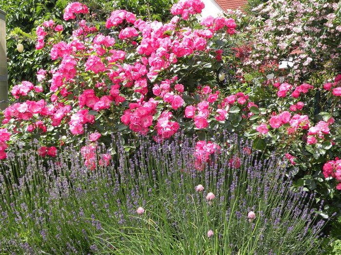 Rose und Lavendel vertragen sich ja bekanntermaßen gut. Hier sind sie eine wunderschöne Gemeinschaft eingegangen. (29.06.2009)