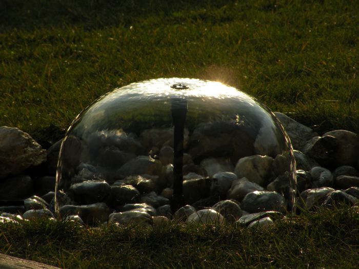 Seit ein paar Tagen ist der Springbrunnen wieder in Betrieb, heute hat sich Abendsonne sehr schön in ihm gespiegelt. (25.03.2010)