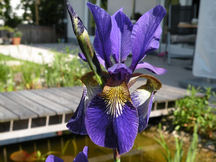 Jetzt blüht eine zweite außerhalb des Teiches. Die im Teich hat zwar schon Knospen, läßt sich mit der Blühte aber noch etwas Zeit. (28.05.2010)
