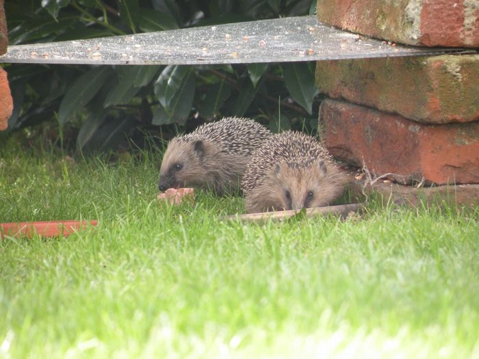 ... doch dann kam es anders als erwartet. Zum ersten Mal sah ich zwei junge Igel gemeinsam beim Futtern. (28.10.2010)