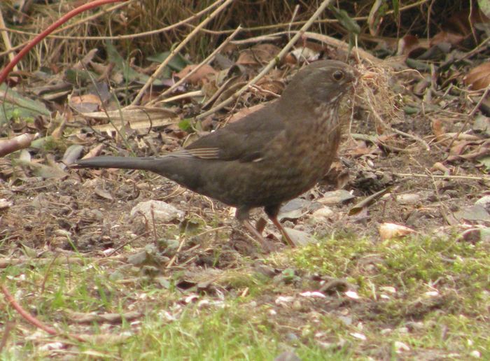Sie baut ihr Nest keine 10m von der Terrasse entfernt in einer Tuja. (13.03.2011)