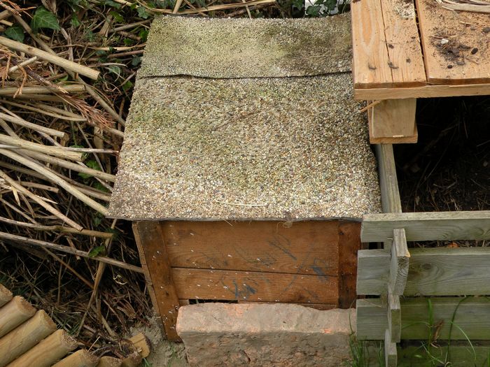 Auf den Deckel habe ich Teichfolie (Steinfolie) genagelt, noch liegt ein Stein vor dem Ausgang, um 20:30 Uhr wird er weggenommen. Heute, einen Tag später, mußte ich allerdings feststellen, daß der Igel nicht zurückgekommen ist. Keine Ahnung, wo er jetzte schläft.