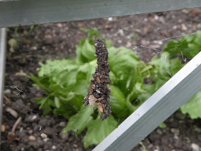 Wahrscheinlich ein Spinnenkokon. Ihn fand ich heute am Gestell des Frühbeetes. (10.06.2011)