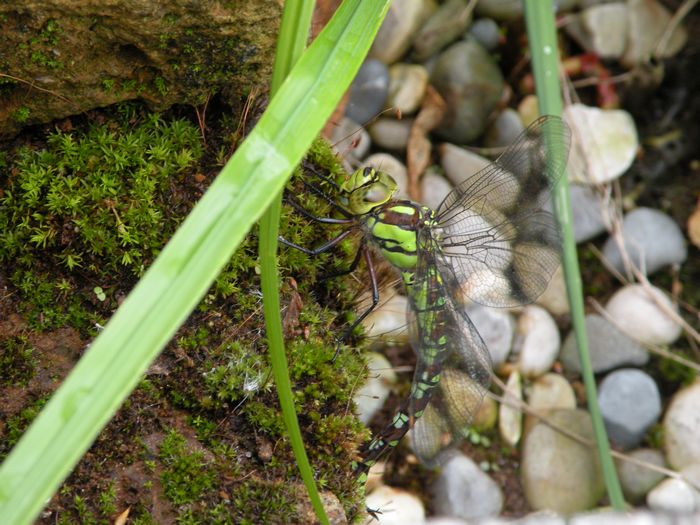 Diese Libelle graste mit ihrem Hinterteil alle bemosten Stellen der Uferumrandung am Teich ab, um dort ihre Eier abzulegen. (02.09.2011)
