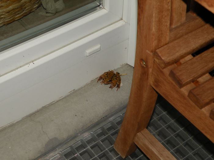 Für ihn, besonders aber für seine Kinder, habe ich über alle Kellerroste ein Draht- bzw. Nylongitter gespannt. Heute saß mein Freund ca. 1/2 Std. unter meinem Gartenstuhl und verspeiste alle möglichen Insekten, die da so rumliefen / rumflogen.