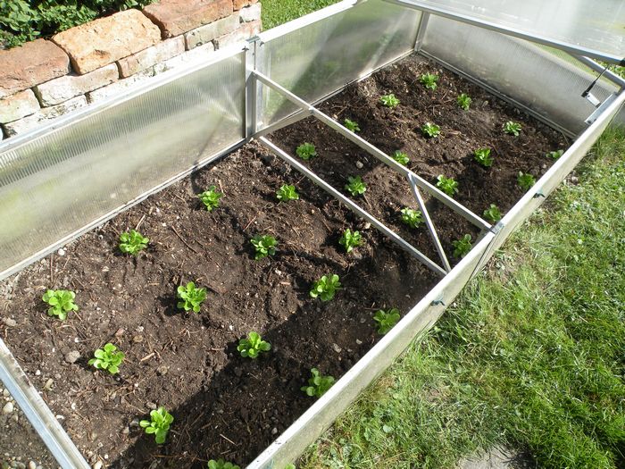 Eigentlich wollte ich Spinat haben - hatte die Gärtnerei aber nicht. Also habe ich 30 kleine Feldsalatpflanzen ins Frühbeet gesetzt. (01.10.2011)