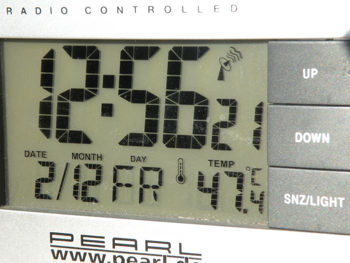 Diese Funkuhr mit Thermometer stand heute auf dem Terrassentisch in der Sonne. Zur gleichen Zeit zeigte das abgeschattete Thermometer der Wetterstation 19,1°C.