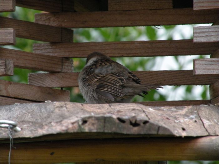 Dieses Federbällchen saß heute bestimmt eine 3/4 Std. im Vogelhaus und tschilpte im Sekundentackt nach seinen Eltern - jedoch, sie kamen nicht. (21.07.2012)