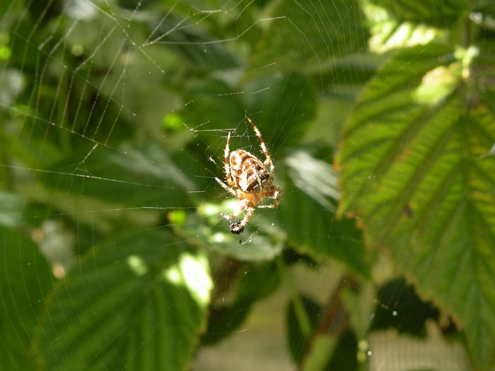 Sie beschützt meine Himbeeren vor lästigen Fressfeinden. Früh morgens fand ich sie beim Himbeerernten und pflückte vorsichtig um sie herum die Beeren ab. (29.08.2012)