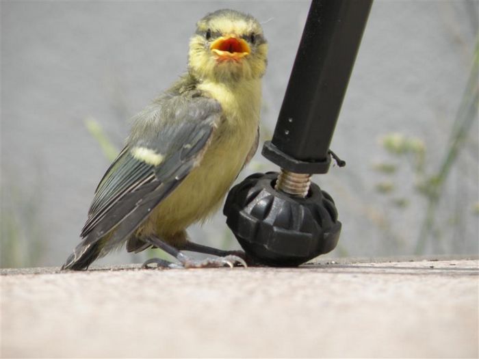 Nachden sie ausgeflogen war, wollte sie an den Beinen meines Photostativs landen. Das mißglückte. Sie fiel auf meinen Fuß und blickte mich anschließend etwas erbost an.