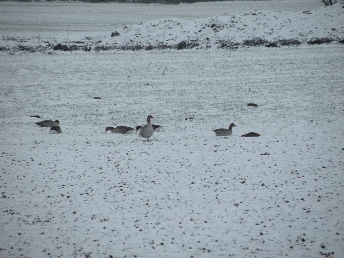 Ein kleiner Trupp Graugänse auf einem Feld neben der Amper. (13.01.2013)