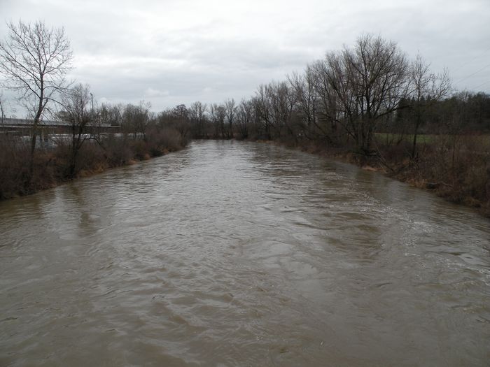 Hinten links sieht man schon - das Flußbett reicht nicht. Nach Schneeschmelze und heftigem Regen weiß die Amper nicht mehr, wohin mit ihrem Wasser.