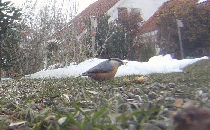 Meine GoPro-Videokamera hatte ich auf Einzelbildmodus gestellt, alle 30 Sek. ein Photo. Den Kleiber hat's erwischt. (02.03.2013)