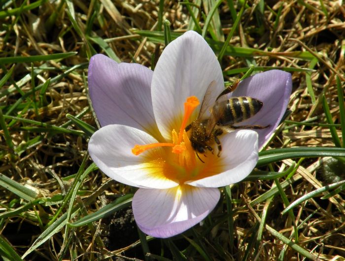 ... diese Biene in einer der aufgeblühten Krokusse. (07.03.2013)