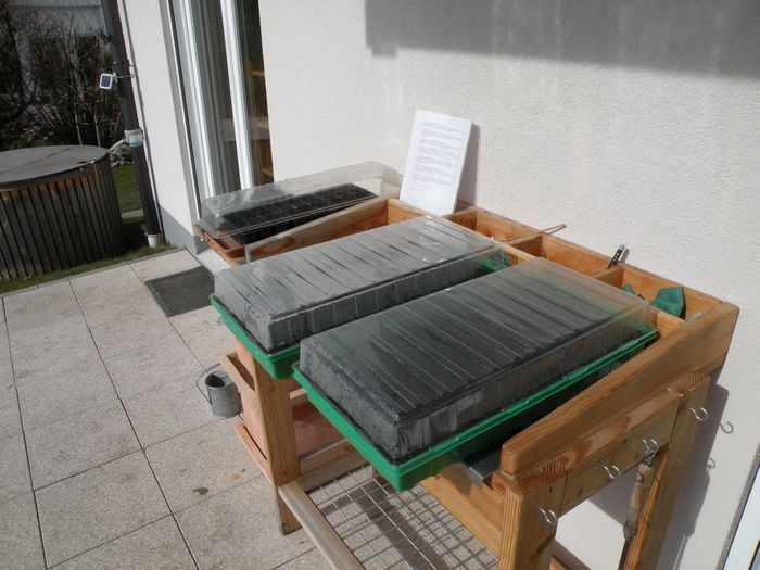 Somit darf das obligatorische Tomaten-Aussaat-Photo auch nicht fehlen. Durch eine Schenkung (Sorte: Tomate ;-) habe ich in diesem Jahr 106 Samen verbuddelt. Mal sehen, was draus wird. Ach ja, ein vierter Grund, warum der Frühling begonnen hat: hier stieg das Thermometer heute auf 20°C.