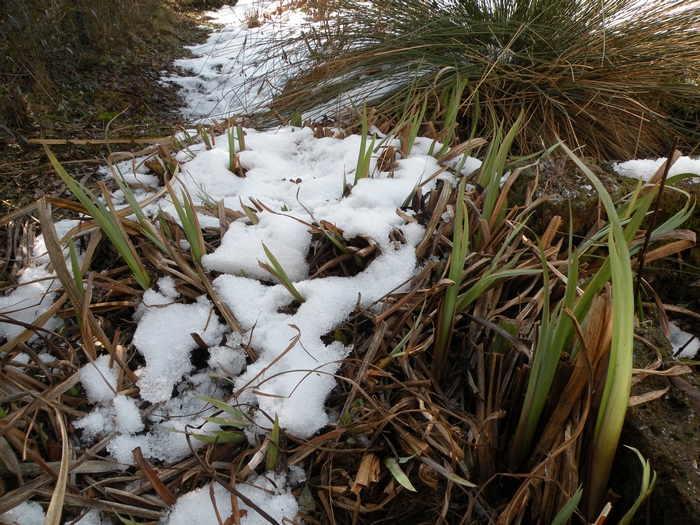 Erst hat mich der Urlaub (glücklicherweise), dann der Zehbruch (leider) von der Inspektion des Gartens abgehalten. Heute sah ich dann erstmals, daß es bereits zu grünen beginnt. Die Blätter der Sumpflilien sind bereits bis zu 20 cm hoch.