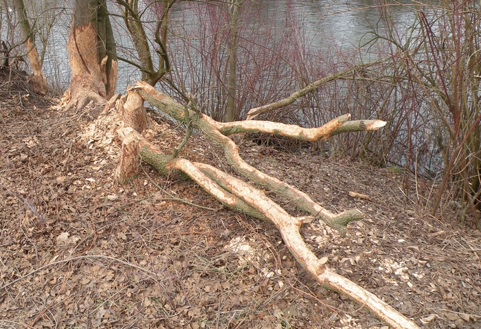 Diesen beinahe komplett abgenagten Baum sah ich heute an der Amper - Die Not scheint groß zu sein. (09.02.2014)