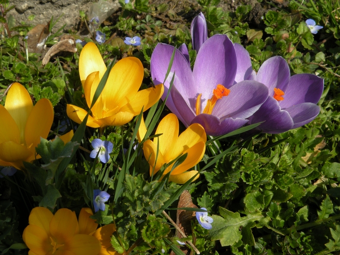 Das Unkraut darf mit kleinen blauen Blüten mitblühen. (08.03.2014)
