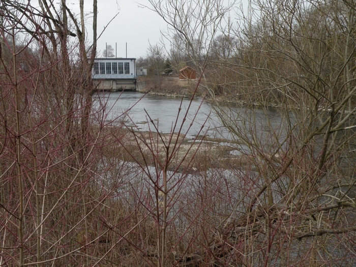 Hinter der Staustufe hat sich eine zig-m2 große Insel gebildet. (16.03.2014)