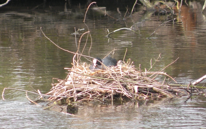 Nicht nur die ganzen Singvögel im Garten brüten, auch das Blässhuhn auf der Amper versorgt seinen Nachwuchs. (13.04.2014)