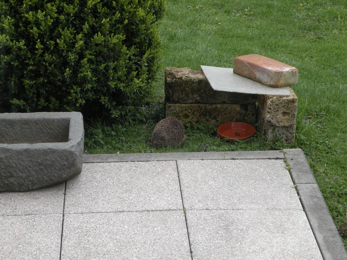 Der hat heute seinen Wecker ein bißchen früh gestellt, um die Mittagszeit lief er über die Terrasse, um dann zu schauen, ob schon was in der Fressschale ist. (15.04.2014)