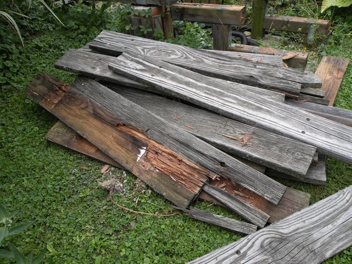 Einige Bretter des Stegs fühlten sich schon arg morsch an. Nach dem Entfernen der Bretter sah man das ganze Ausmaß der Fäulnis. (02.08.2014)