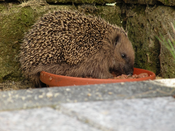 Schön, wenn man als Kleiner den Freßnapf für sich alleine hat - man kann sich richtig breit machen. (12.11.2014)