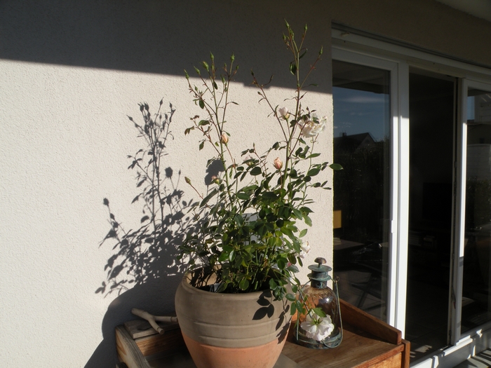 Diese Rose hört nicht auf zu blühen. Nicht nur, daß noch neue, kleine Blüten vorhanden sind, auch eine Reihe von Knospen warten auf das Erblühen. (12.12.2014)