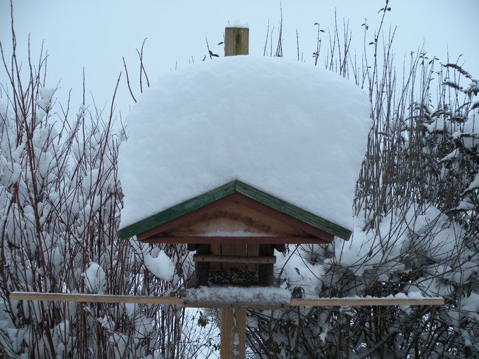 In mühevoller Arbeit habe ich nun die Dachisolierung für das Vogelhaus fertiggestellt. 30 cm Styropor sollten für ausreichende Wärmedämmung reichen. (31.12.2014)