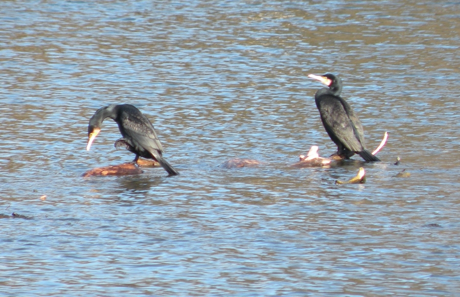 Insgesamt waren es drei Kormorane, einer saß jedoch ein wenig abseits, so daß er nicht aufs Bild paßte. (31.01.2015)