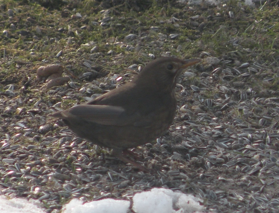 Heute tauchte eine komplett schwanzlose Amsel am Vogelhaus auf. Da die Mauser lange vorbei ist, müssen ihr die Schwanzfedern auf andere Art und Weise abhanden gekommen sein. Katze, Greifvogel? Es scheint sie aber nicht sehr zu behindern, Flug und Landung sehen normal aus.