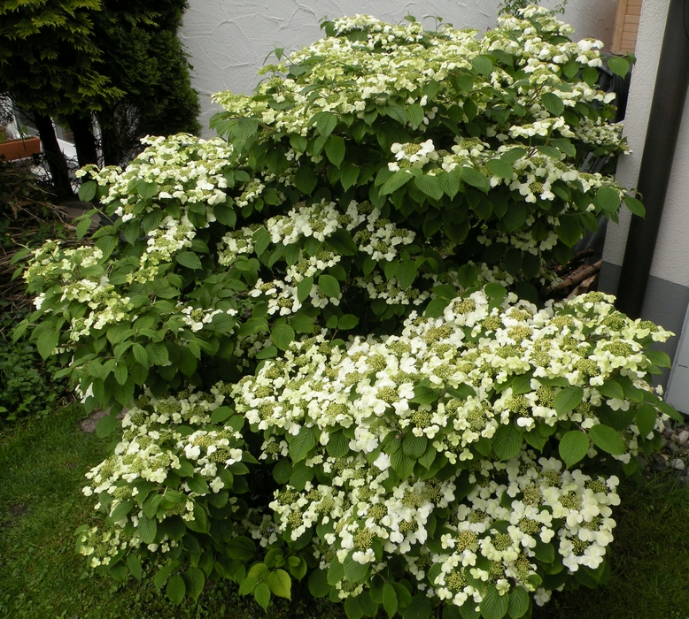 Leider hält die Blütenpracht immer nur einige Tage an, inzwischen liegen die Schneeflocken schon unter dem Busch. (11.06.2015)