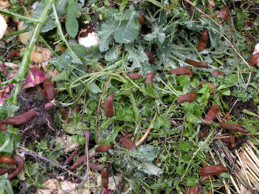 Wie viele Schnecken sind in diesem Ausschnitt meines Kompostes zu finden? (ich habe über dreißig gezählt). (15.06.2015)
