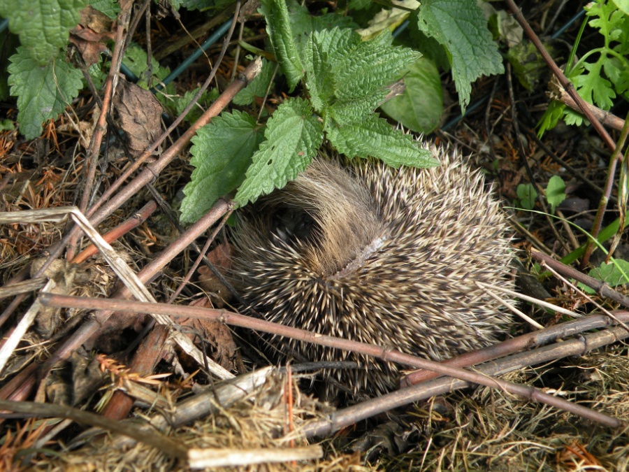 Nachdem ich auf meiner Wildkamera vor ein paar Tagen bereits zwei junge Igel (ich schätze, sie sind Anfang des Sommers geboren) gesehen hatte, turnt nun auch noch ein ganz lütter durch den Garten. Ihn fand ich heute exakt dort, wo schon seine Eltern und Großeltern die Herbstsonne genossen haben.